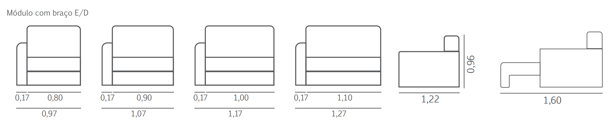 - Assento: Espuma D-26 com mola ensacada, mola bonnel e percintas elásticas de 50mm entrelaçadas.