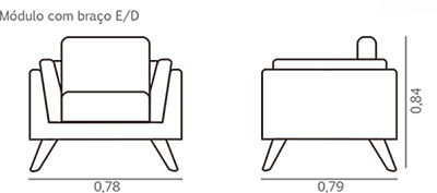 Assento: Espuma D-26 com mola ensacada, mola bonnel e percintas elásticas de 50mm entrelaçadas